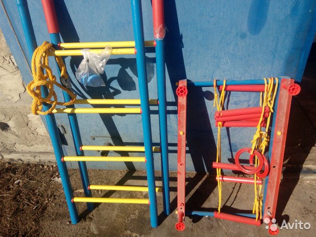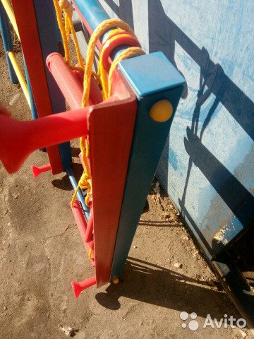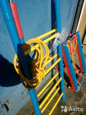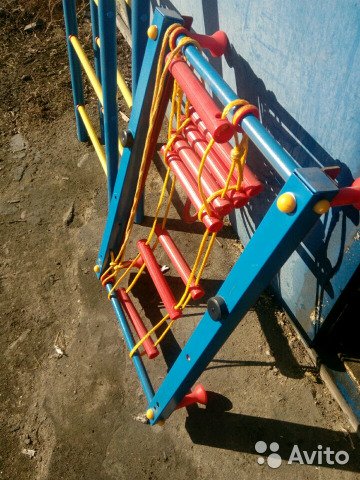 Детский спортивный уголок брали в симоленде за 9000 доработан своими руками усилена верхняя опора уголком на три мм выдержит слона абсолютно новый в комплекте трапеция, канат, кольца, веревочная лестница очень хорошее состояние (новый) все натяжители и подставки в сборе